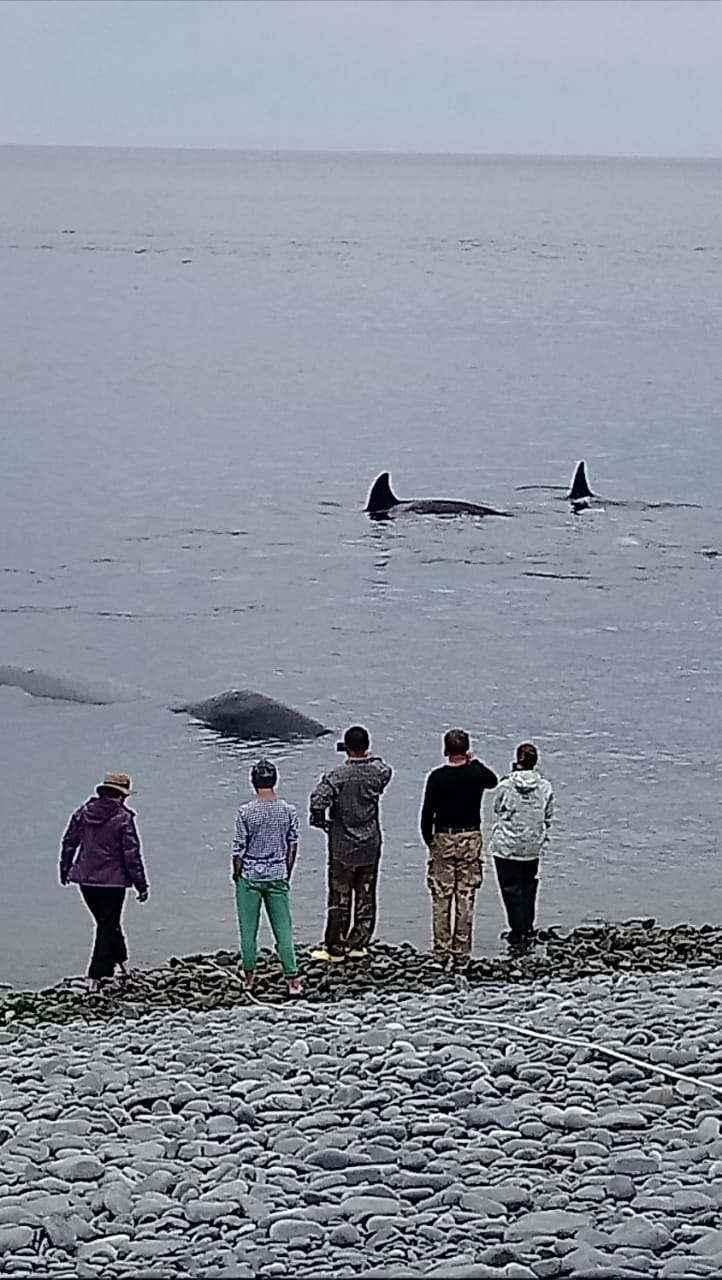 В Магадане косатки атакуют кита