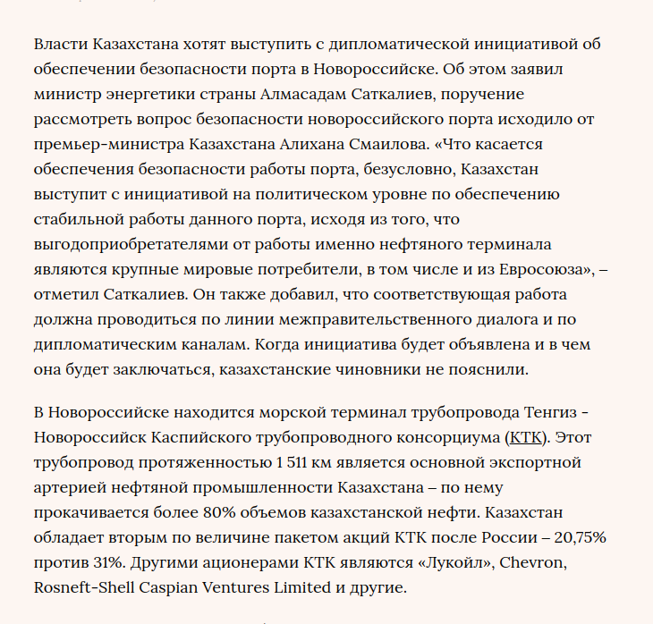 Может - наоборот? Казахстан на место ставят, чтобы российской нефти дорогу не переходил?