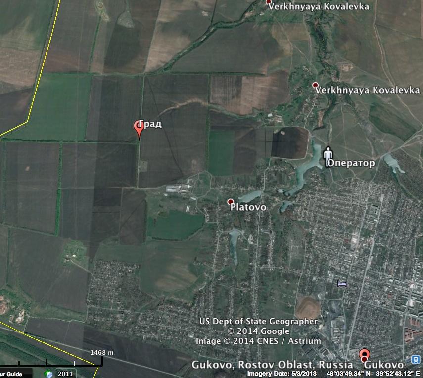 На картинке показано место съёмки и место расположение Градов. Жёлтая линия - граница Украины.