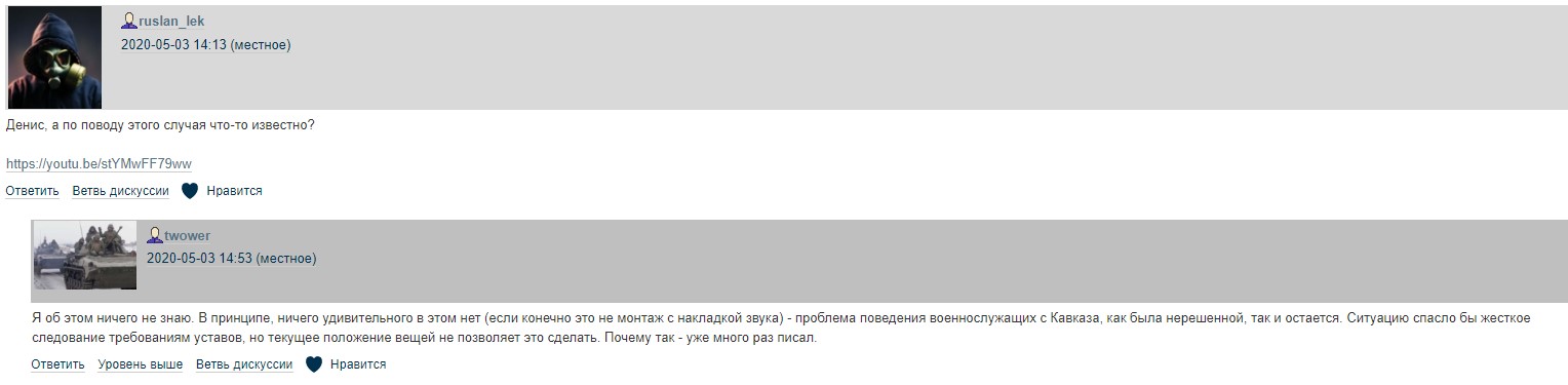 Пользователи называют такое поведение в российской воинской части позором для Минобороны и призывают главу Чечни Рамзана Кадырова разобраться с устроившими «филиал Ичкерии*» в российской части молодыми чеченцами.