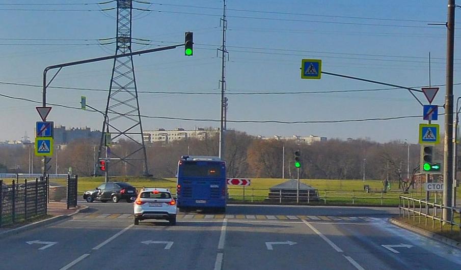 странный там перекресток, стрелка направо с двух полос и другим тоже зеленый