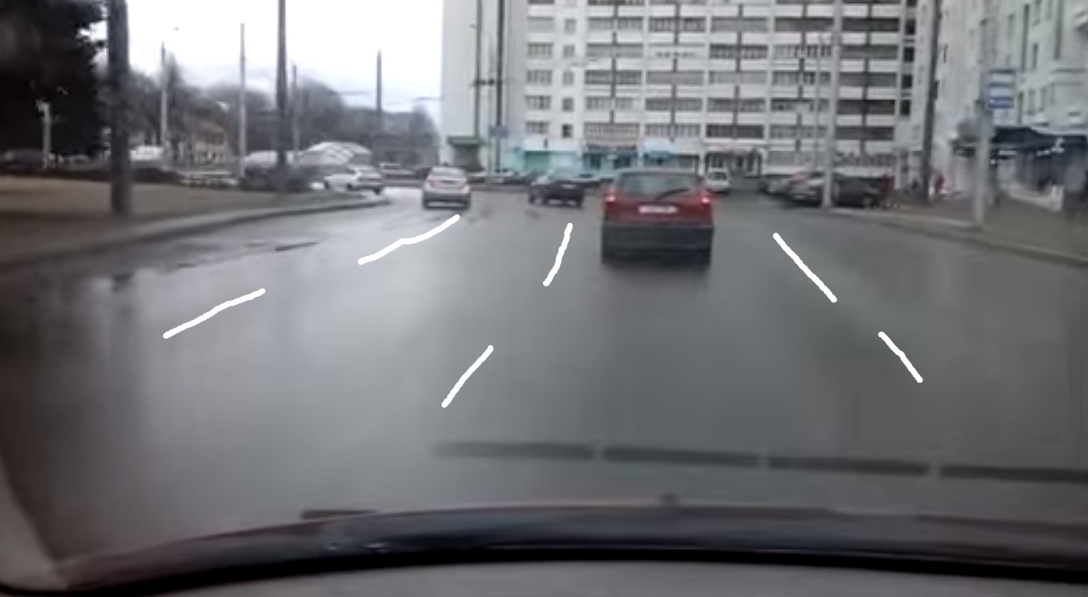 Тут я не понял немного ? У тебя красной линией что обозначено ? Регик едет по полосе левее от красной полосы ?