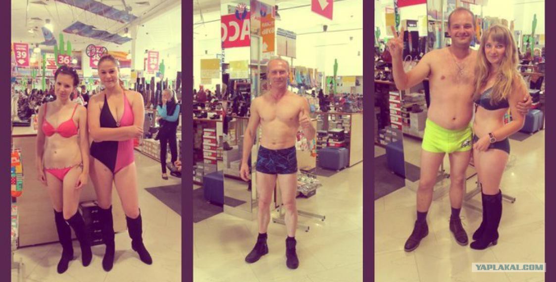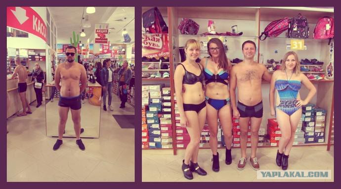 Одним из условий акции была фотосъемка покупателей в купальном костюме и в новой паре обуви. Затем организаторы выложили фото в социальные сети.