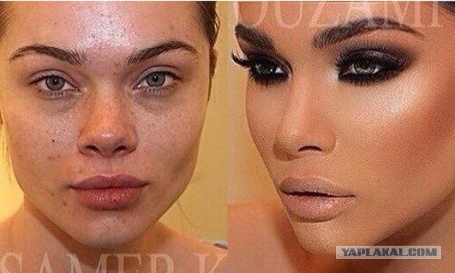 Не ну нынче норма, когда моль - бледная становится махаоном после макияжу....Главное утром быстрее мужыка проснуться и успеть намакияжыца.... а то аборт у самого мужыка произойдет:)