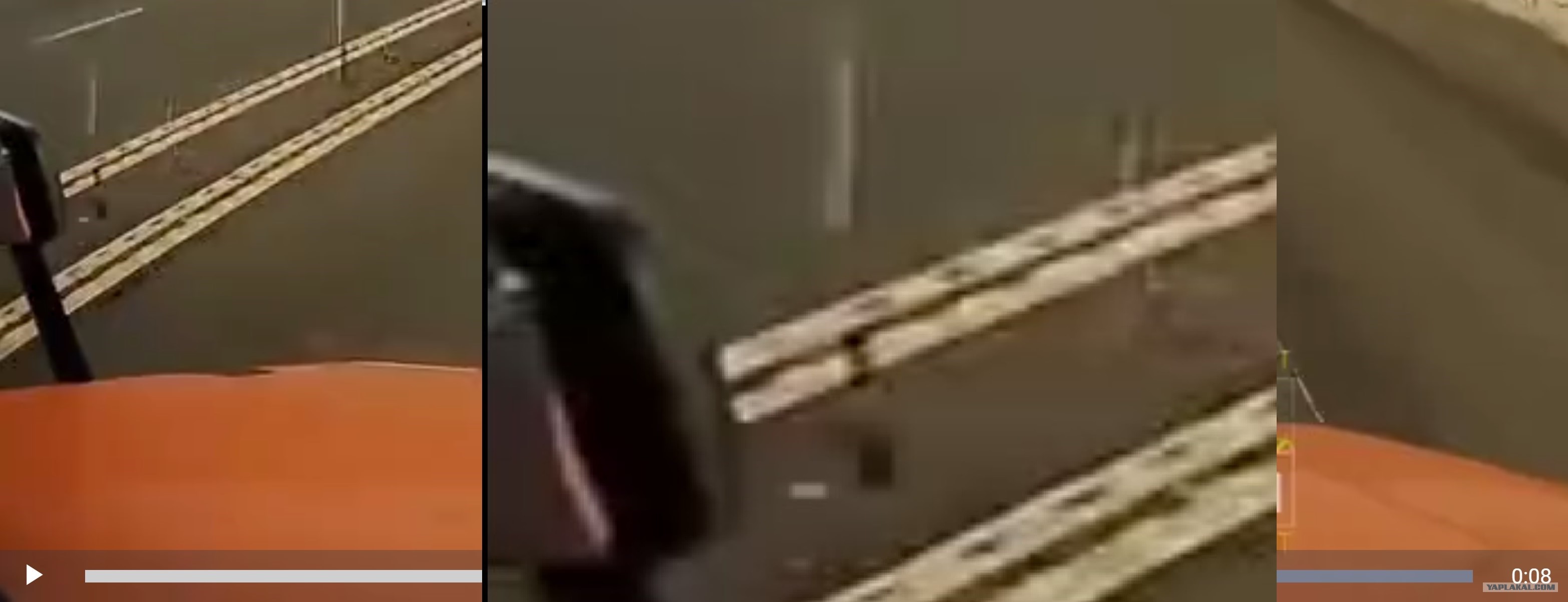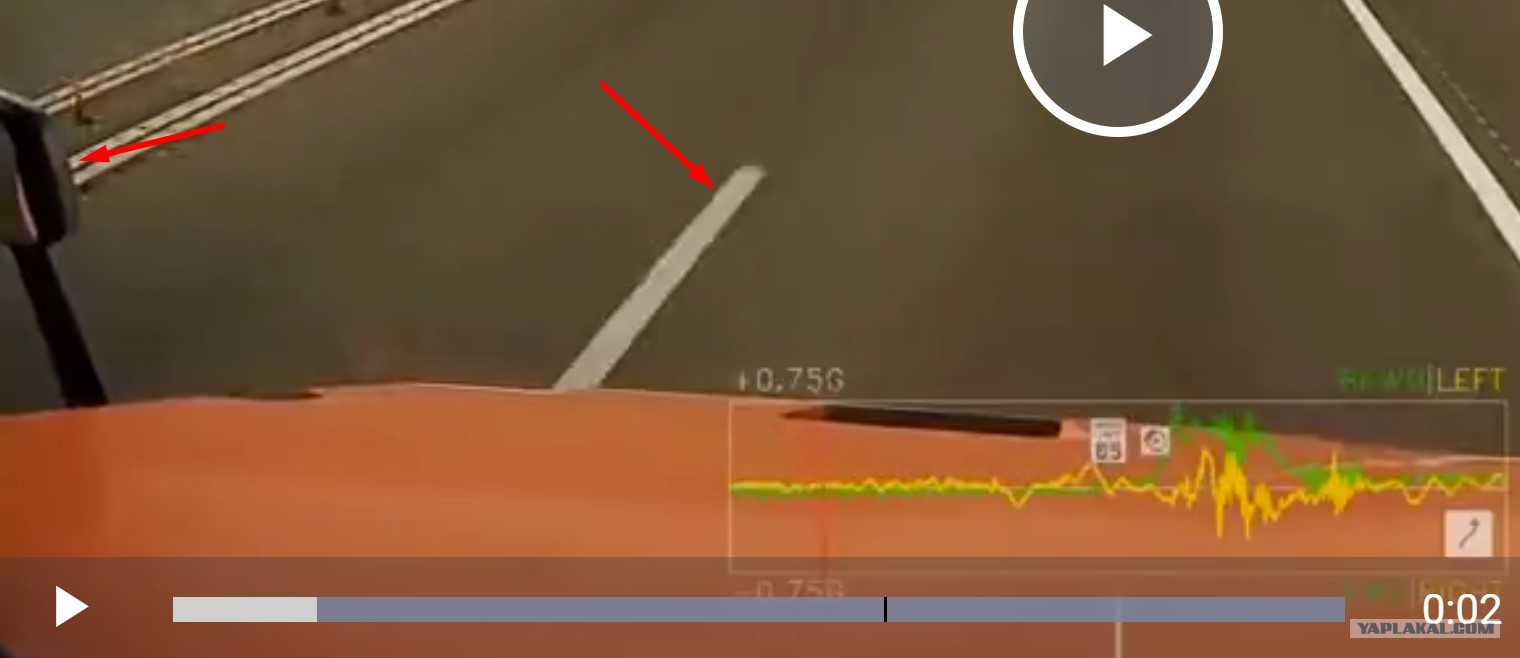 Пуля пролетает когдя тягач уже миновал место сужения. Ничего в зеркалах ему выискивать не нужно - т.к. он никого не зажал. А долбоеба идущего с превышением скорости он в зеркало увидел и видно что пытался принять вправо. Но тому это уже не помогло.