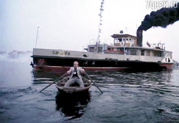 Мягков чуть не погиб там на этой сцене..Лодочку-долбленочку замотало винт.