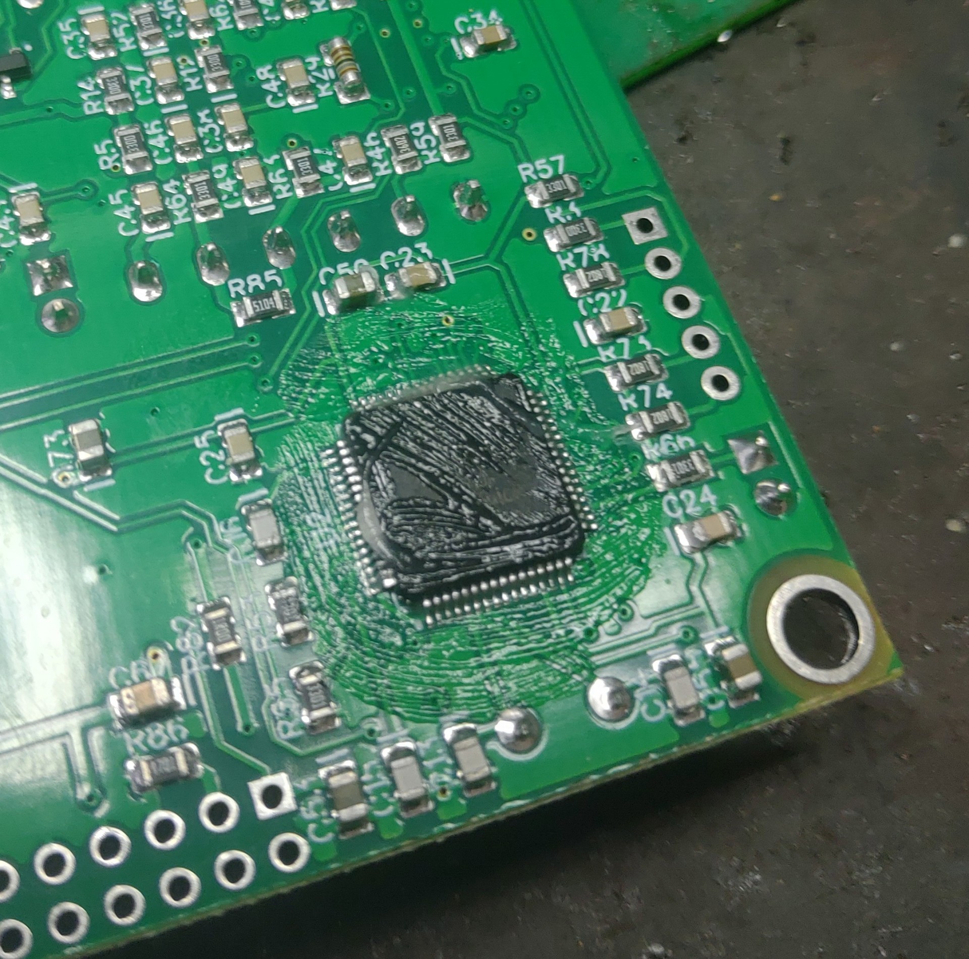 Я бы сказал - что там практически все, кроме одного - лишние движения. Пересадить микруху в QFN корпусе - дело 5 минут. А больше всего непонятно - а нахрена так срать пастой и флюсом ??? чтобы потом долго и усердно мыть всю плату ? И скорость потока из фена просто убила... Как он только мелочевку вокруг не посдувал ? видимо при сборке робот хорошо ее на клей посадил, повезло.