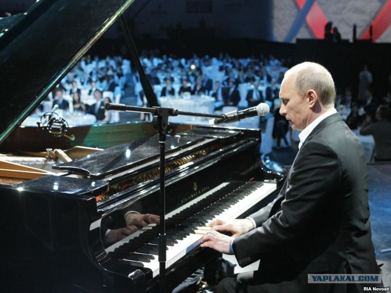 Путин исполняет на рояле, Медведев - танцует.