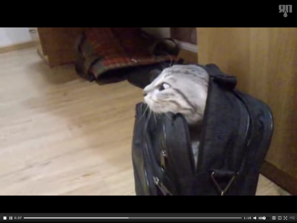 вот скажите, для вас коты это игрушки ( в данном случае). ведь применено насилие-засунули в сумку. потом он сам выбирался и видел своего хозяина, который снимает на "тапку", возможно он ждал помощи от хозяина-друга.
