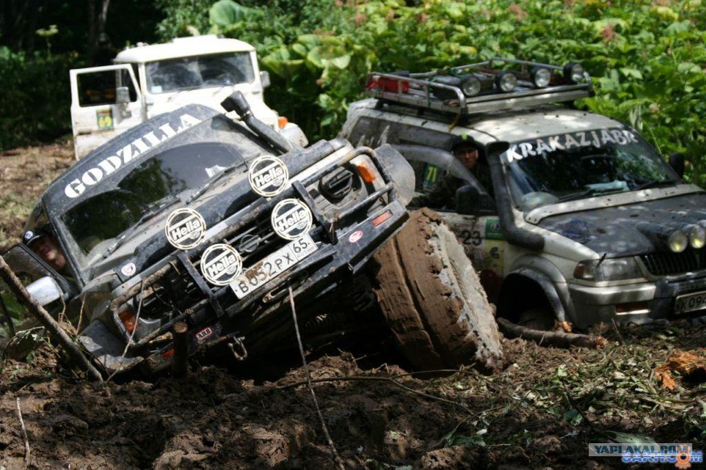 больше заинтересовала та тойотка (если не ошибаюсь) с которой снимали. думаю по той же грунтовке с лужами она шпарила бы ненамного медленнее.