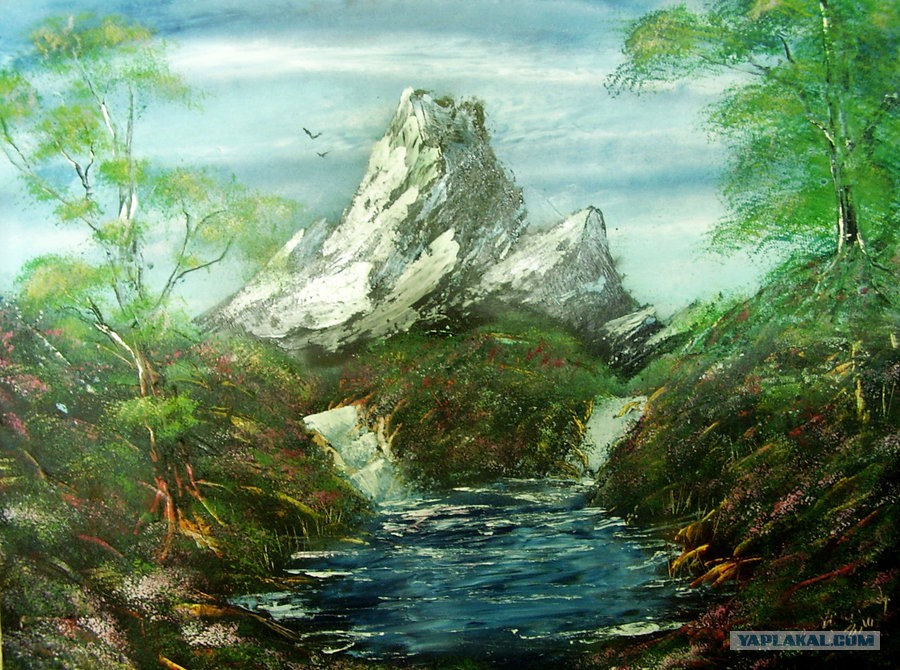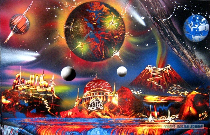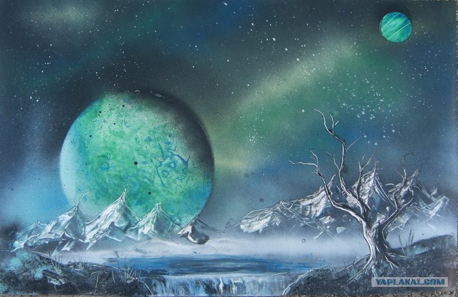 Вот честно, не смотря ролик, дайте угадаю что он нарисует. Космос, планеты и горы....