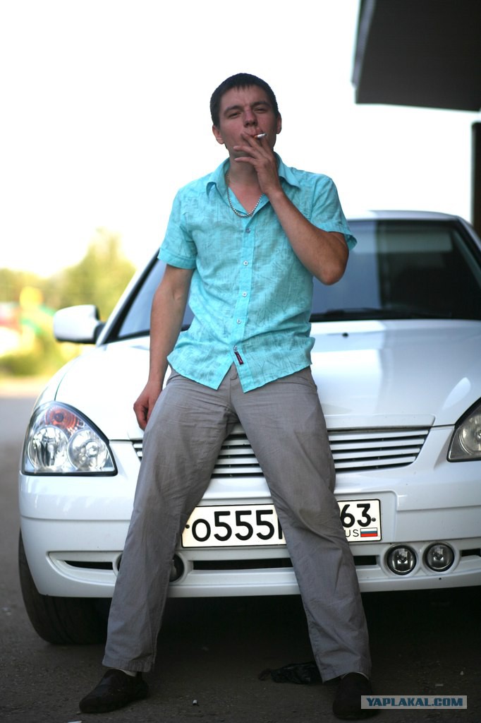 Что-то там у приоры накапало... Или у него - судя по грязным штанам...