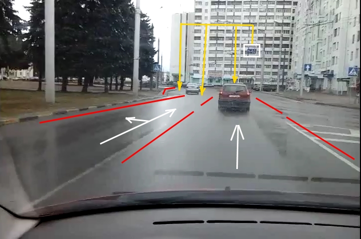 3 - средняя полоса, в которой едет регистратор