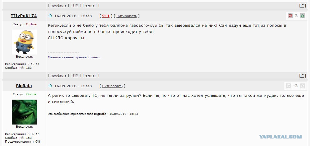 А регик то сыковат, ТС, не ты ли за рулём? Если ты, то что от нас хотел услышать, что ты такой же мудак, только ещё и сыкливый.