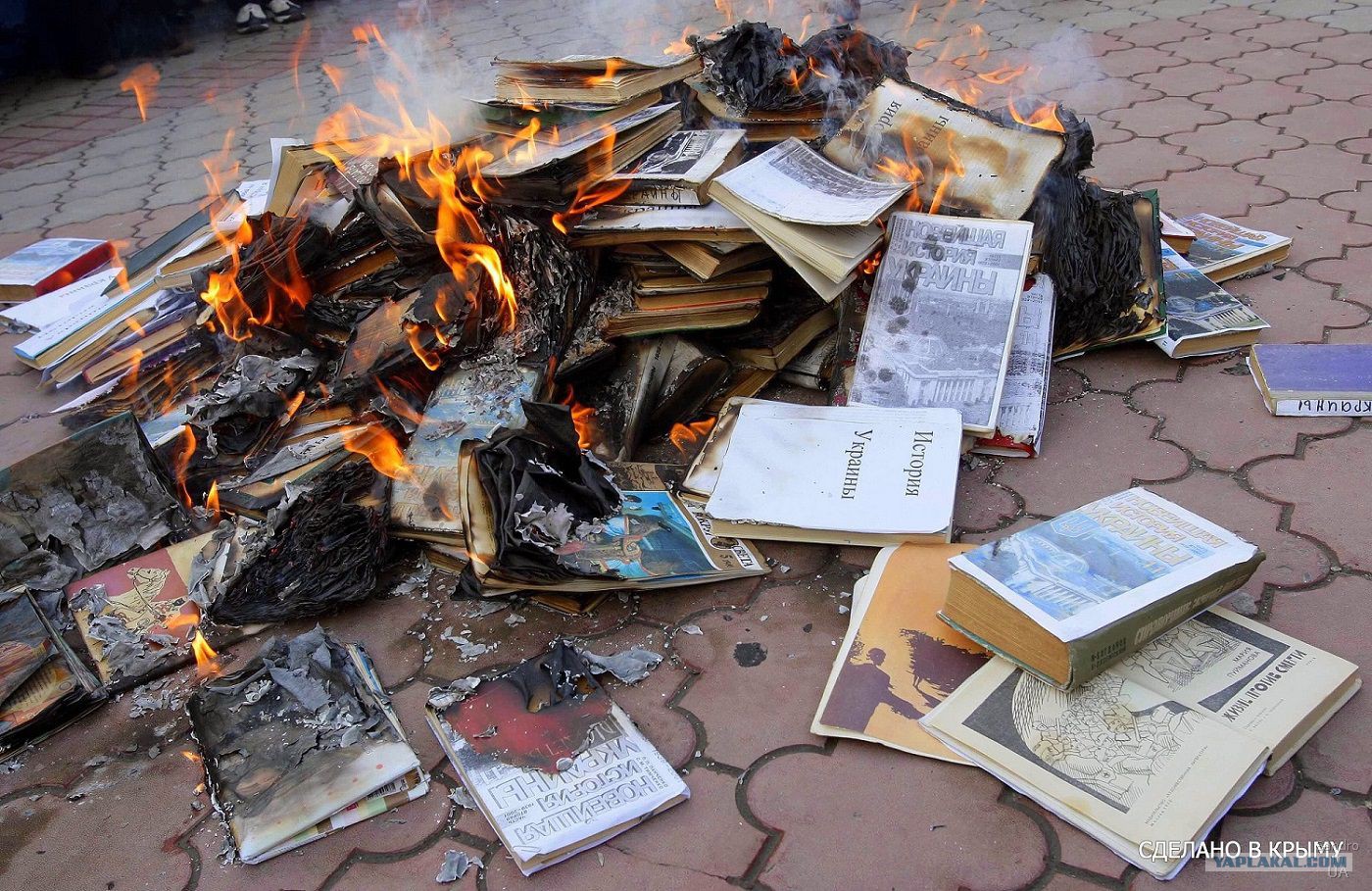 Или что у нас жгут старые учебники по истории Украины? Так они у нас после каждых выборов меняются!