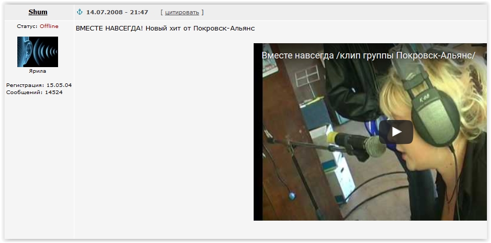 Видел тему про эту песню на ярославском форуме. Я чот подумал чувак просто тролит всех. Теперь и сюда добрался.
