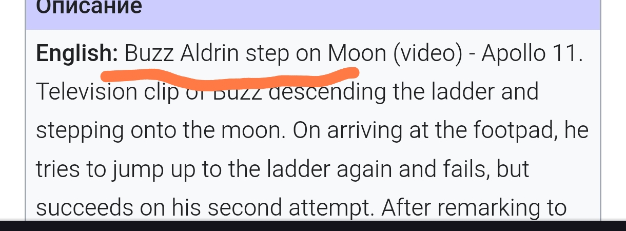 "Видеокамера, смонтированная на «Аполлоне-11», запечатлела первые шаги Нила Армстронга по Луне."