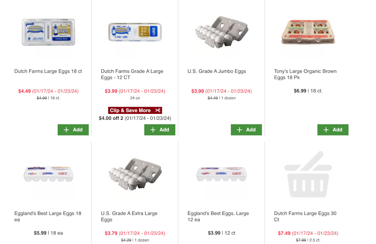 Но на сайте Сэмс органик яйца 7.54 за 24 штуки (https://www.samsclub.com/p/members-mark-cage-free-org-egg/prod26190690?xid=plp_product_3). Обычные - что-то около 4.80 за 24.