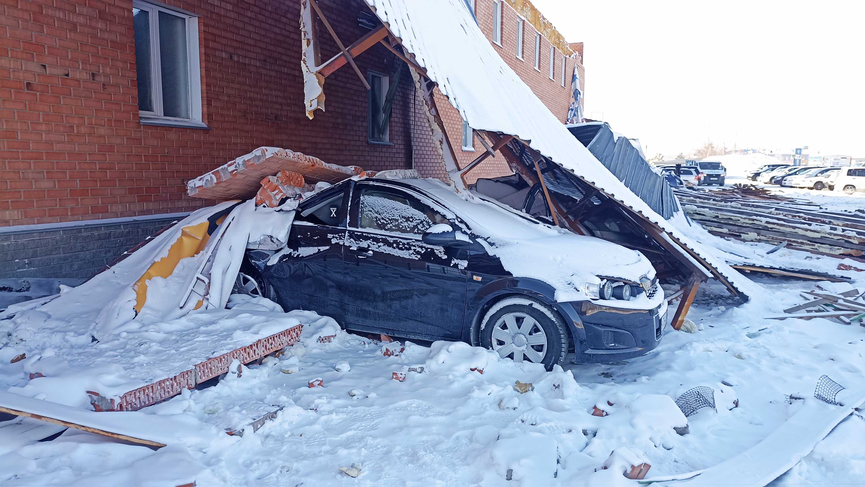 Тут недавно по новостям показывали, как в Барнауле крыша упала на авто, но вопреки всему, водительница не пострадала.