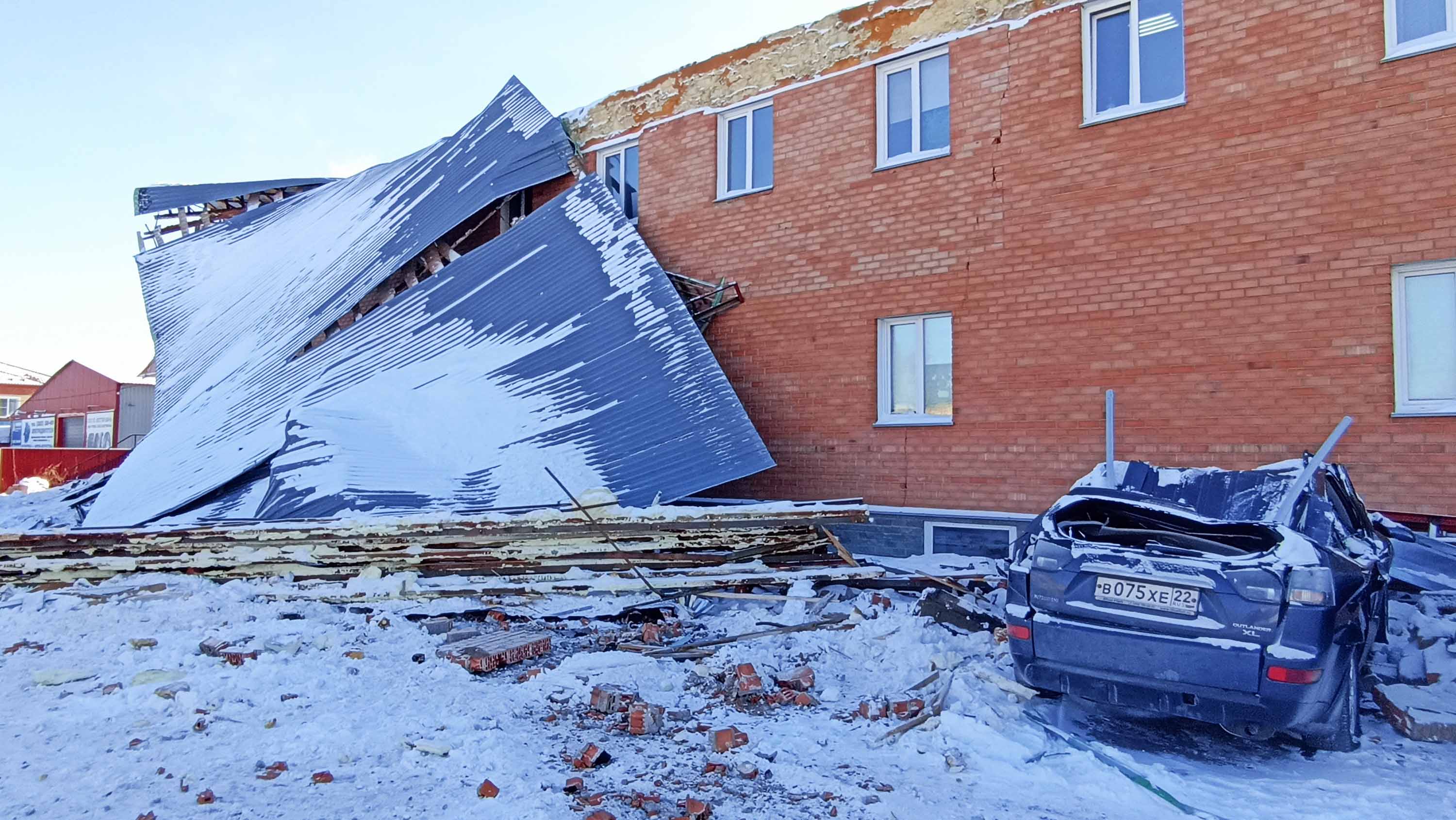 Тк, не умею вставлять ссылки «тут» , если интересует тот репортаж, легко в поиске ищется. "В Барнауле крыша здания упала на машину, но водитель ..."