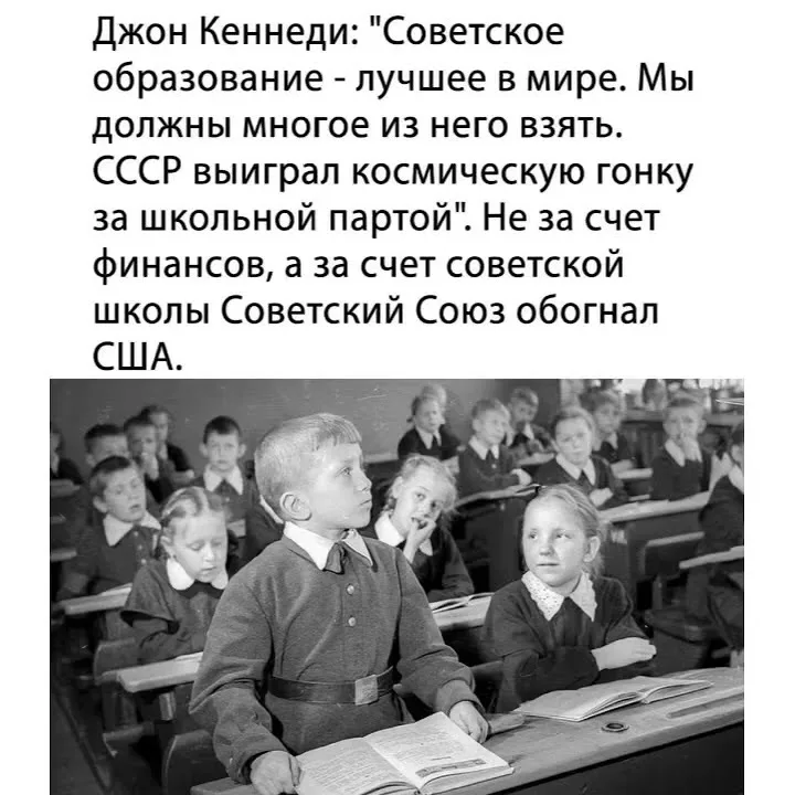Любите вы эту картинку, вот только щит и меч Родины выковали и Гагарина в космос запустили люди с царским школьным образованием, а некоторые из них даже заканчивали немецкие и английские университеты. Да и те, кто помладше, учились точным наукам тоже еще по царским лекалам. Образование поломали как раз при Хрущёве, но при этом уебане много чего поломали, включая саму идею коммунистического общества...
