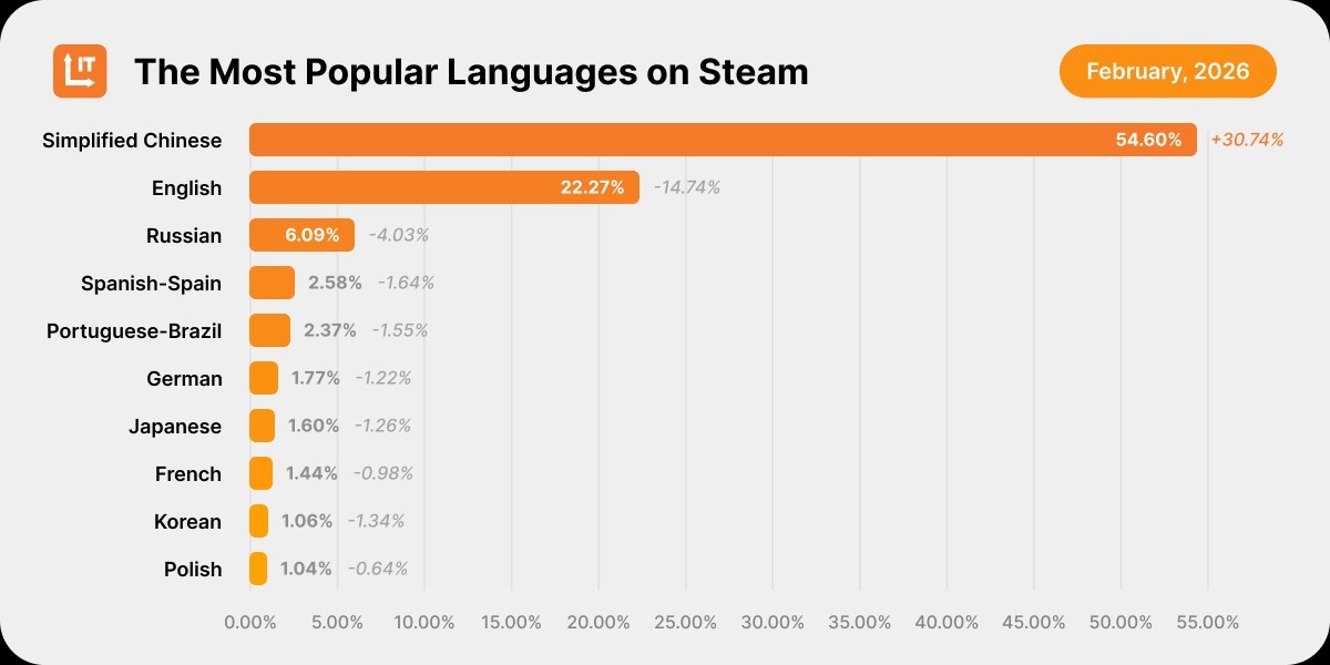 Я хз насчёт Европы, но в Стиме Русский язык находится на 3 месте уже много лет