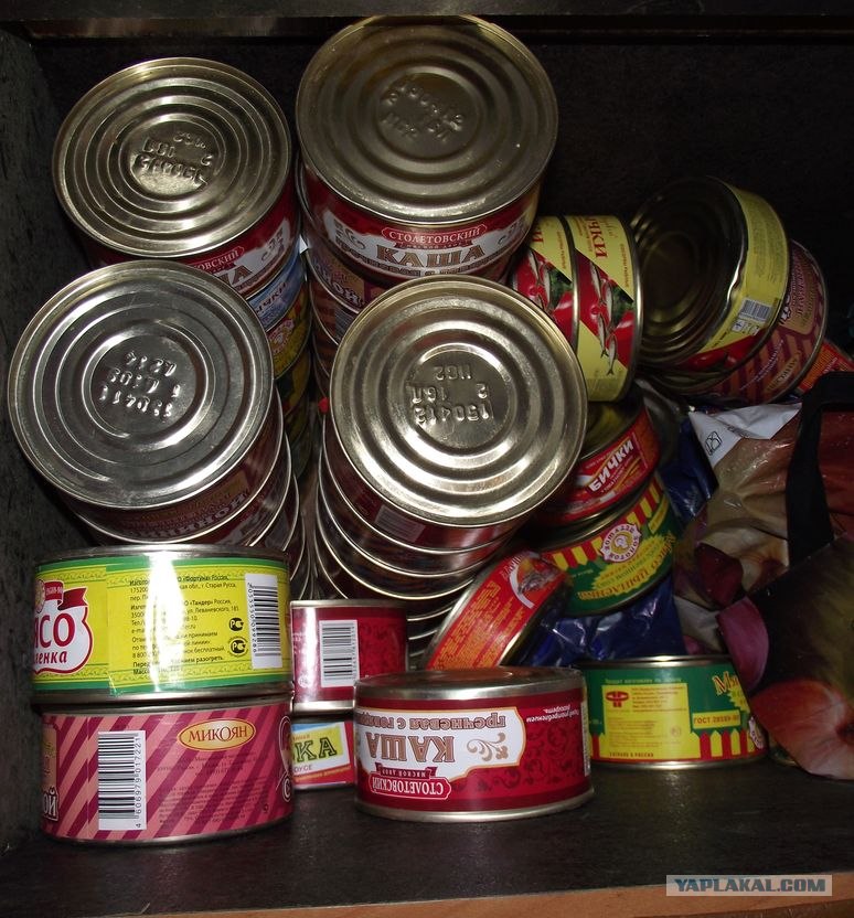 Что делать, что делать....вот, готовиться надо...это только малая часть запасов, остальное на даче, в основном продукты длительного хранения. Так что к кризису готов.... cool.gif