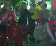 После того, как она ему по яйцам ногой зарядила (на 22 секунде видео) - только кулаком в морду (безо всяких официантов). Ибо это не женщина. Это - мразь.