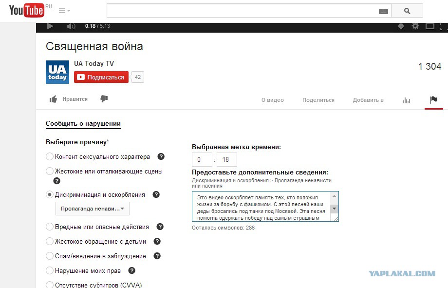 Пожаловался на видео. Вот текст копипастом, чтобы не набирать вручную: