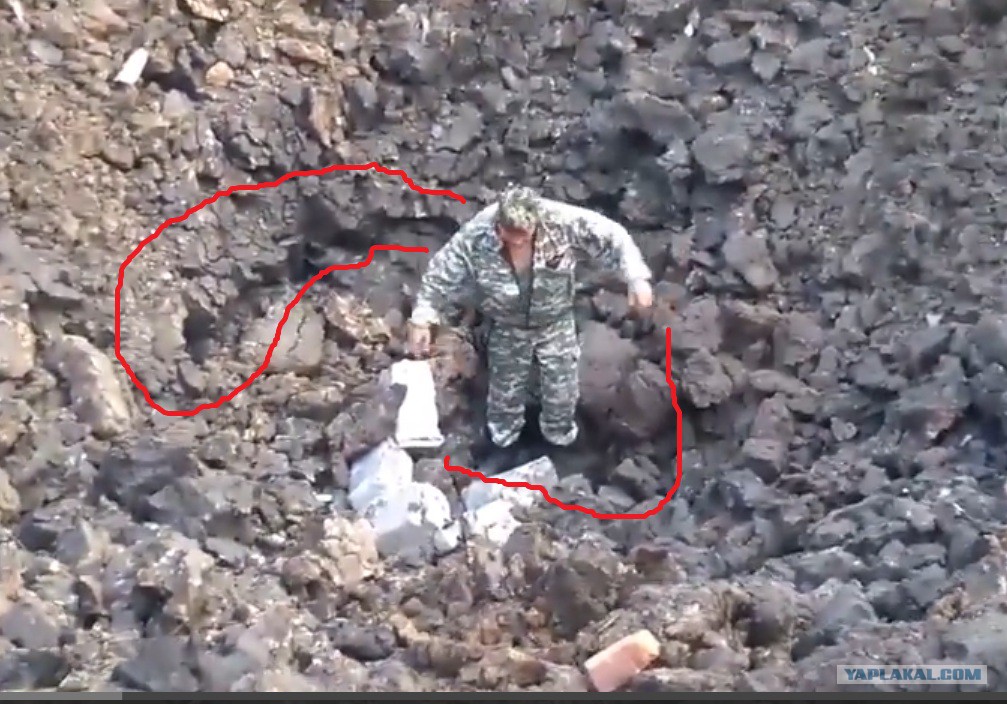 Я конечно не спец по воронкам, но первое что бросается в глаза это то что какаято слишком чистая воронка, нет следов горения, да и фото сделано только одно и без возможности визуального определения размеров воронки кроме как по человеку которого туда можно засунуть фотошопом, при такой воронке там в радиусе сто метров чисто поле выжжено должно быть наверно