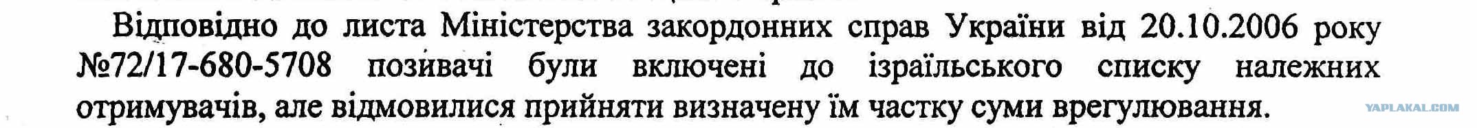 "Несчастные израильтяне" получили всю компенсацию от правительства, которое в свою очередь получило от украинского правительства.
