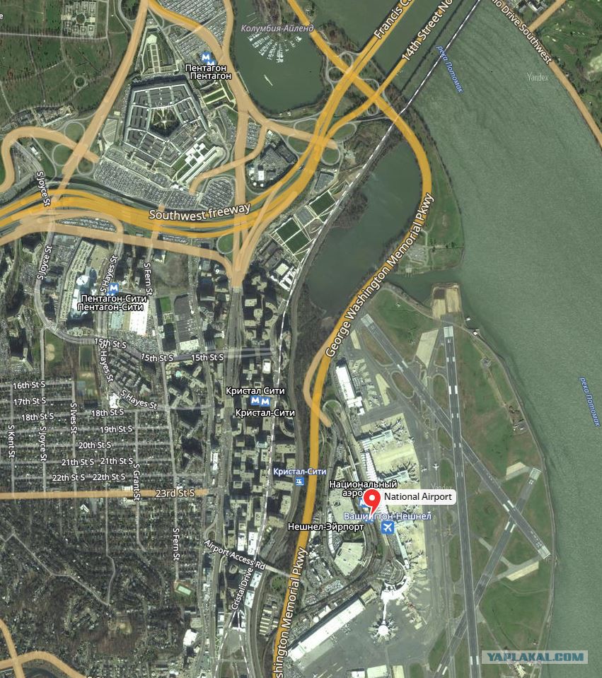 Аэропорт Рейгана просто в прямой видимости от Пентгона.