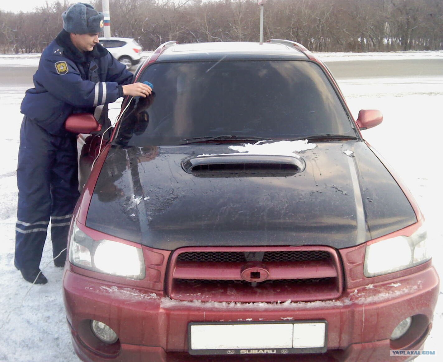 Сразу не понял. Подумал, что гаишник тонировку на люке измеряет.