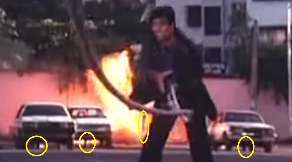 Я вот понять не могу, там машины возле забора от чего сдетонировали?