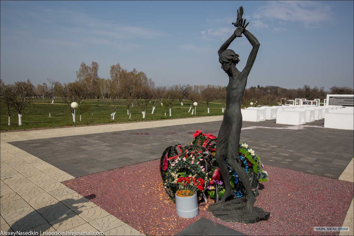 В концлагере действовали по науке. Чтобы добиться наиболее эффективного результата для забора крови, детей подвешивали под мышки, сжимая грудь, а на ступнях делали глубокие надрезы. Памятник девочке-подростку наглядно показывает эту "технологию".