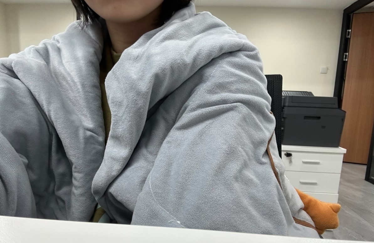 Вот Хэ мне свою фотку в декабре прислала, как они на работе в Шэньчжэне согреваются. В тёплых одеялах живут и работают