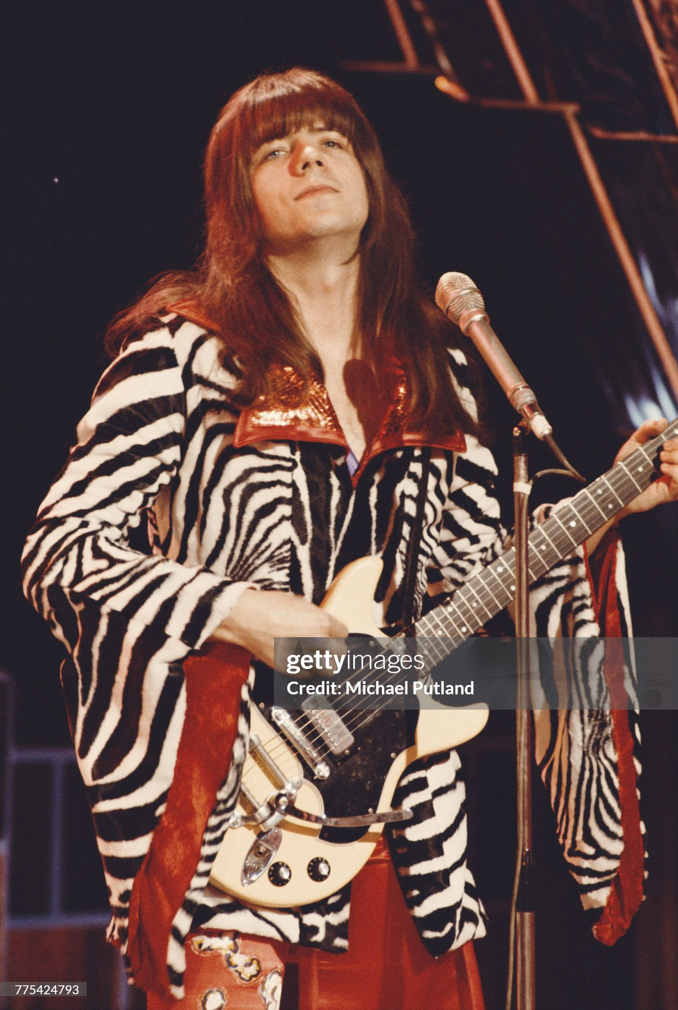 Guitarist Andy Scott performing with British glam rock group Sweet on the Christmas Day edition of the BBC TV music show 'Top Of The Pops', broadcast 25th December 1973. (Photo by Michael Putland/Getty Images)