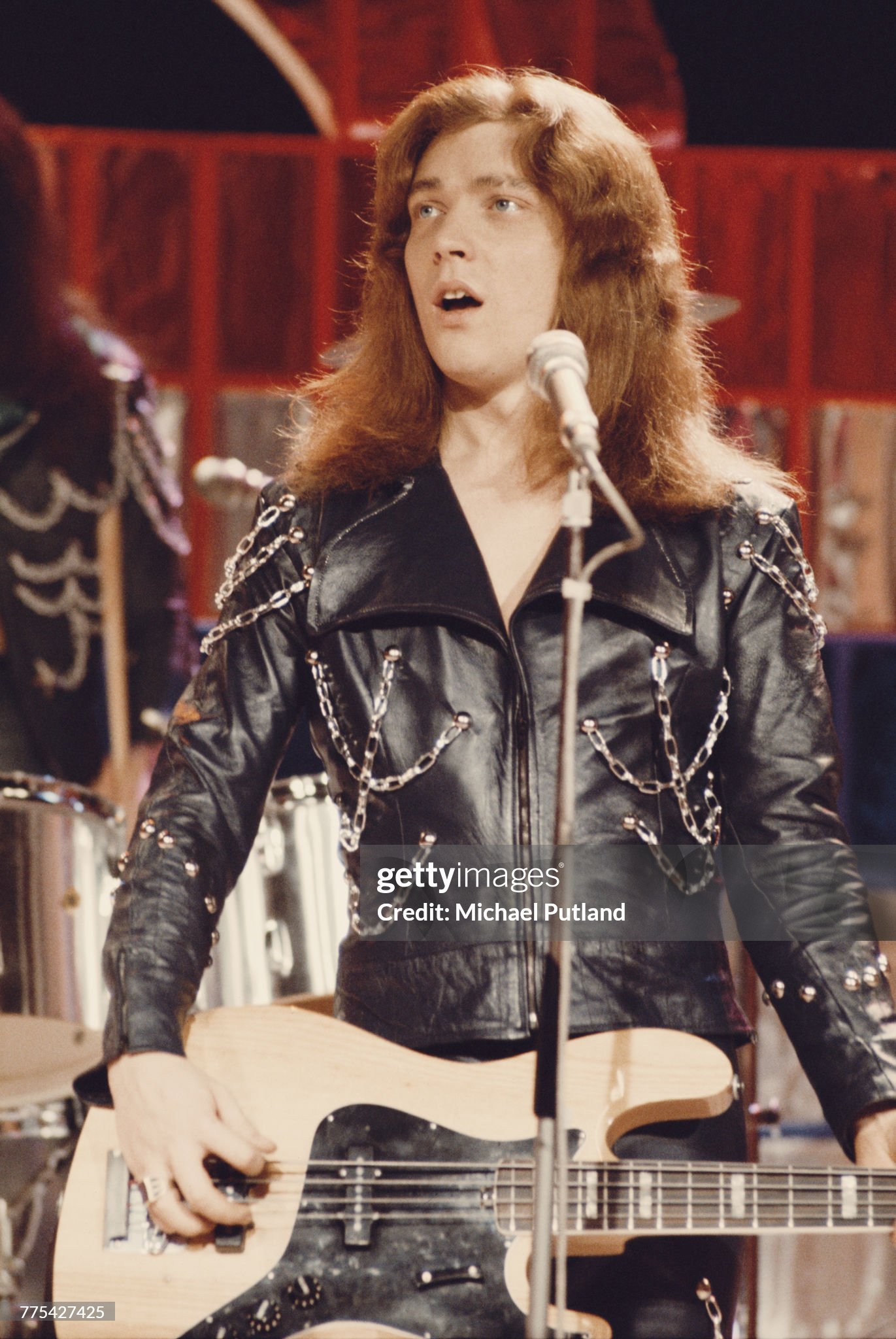 Bassist Steve Priest performing with British glam rock group Sweet on the Christmas Day edition of the BBC TV music show 'Top Of The Pops', broadcast 25th December 1973. (Photo by Michael Putland/Getty Images)