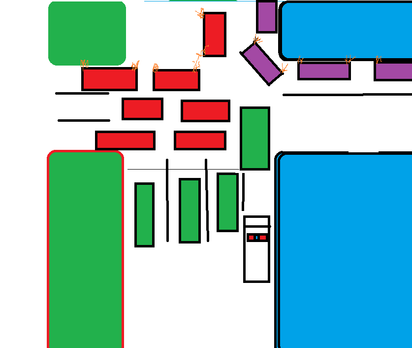 Чуть поправлю тебя. ТАм в кадр попал угол здания и получается они с другого направления ехали. Красным обвел тот угол.