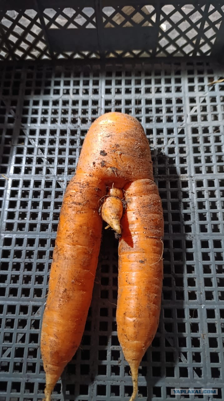 При посадке моркови нельзя класть в грунт свежую органику(навоз,перегной,ростительные остатки). И тогда можно надеяться на урожай нормальной,нераспальцованной моркови. А сериал убогий, проходящий на глазах маленького ребенка.