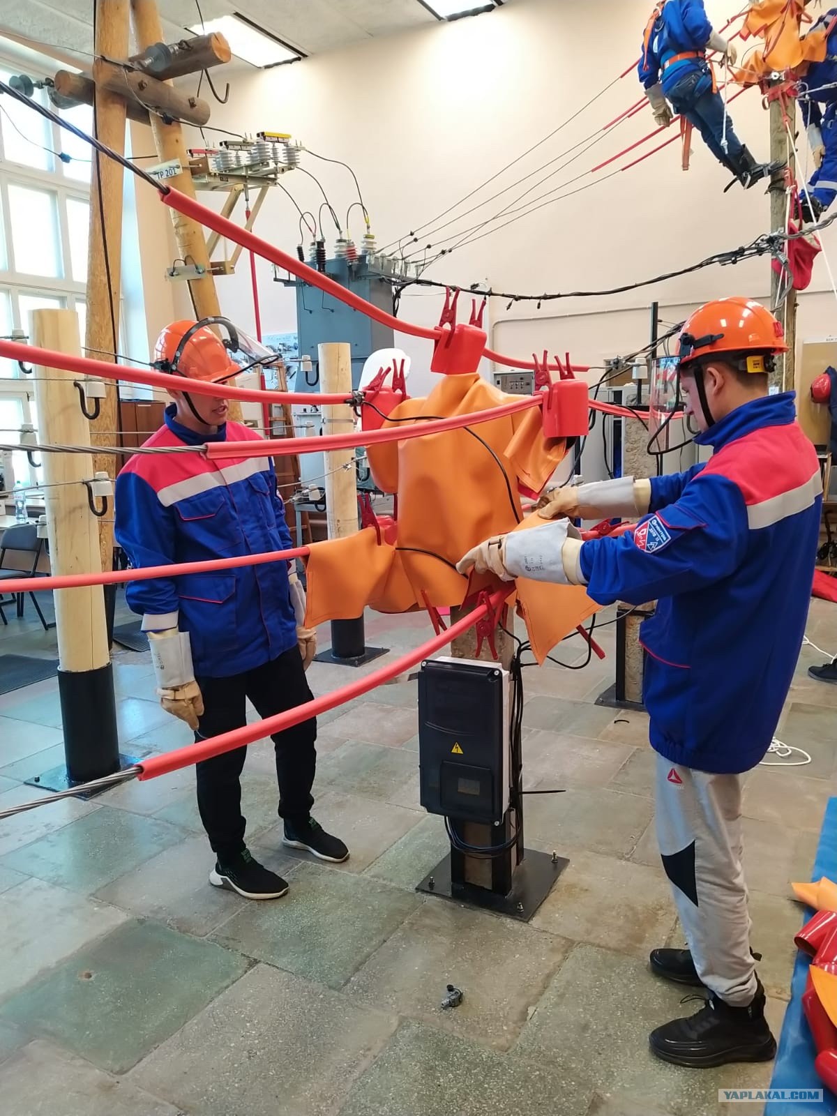 Людька подъёмника изолированная. Костюм защитный. Да и не похоже там на 22 кВ.
