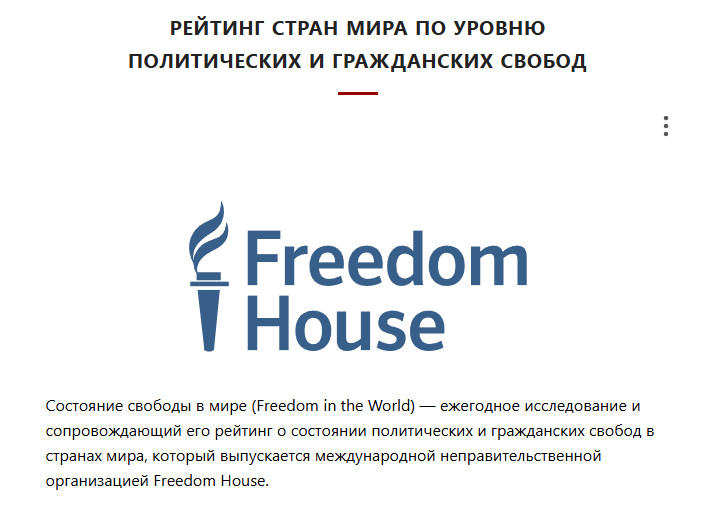 Рейтинг стран мира по уровню политических и гражданских свобод / Гуманитарный портал: исследования и прогнозы [Электронный ресурс] // Центр гуманитарных технологий, 2006–2025 (последняя редакция: 01.12.2025). URL: https://gtmarket.ru/ratings/freedom-in-the-world