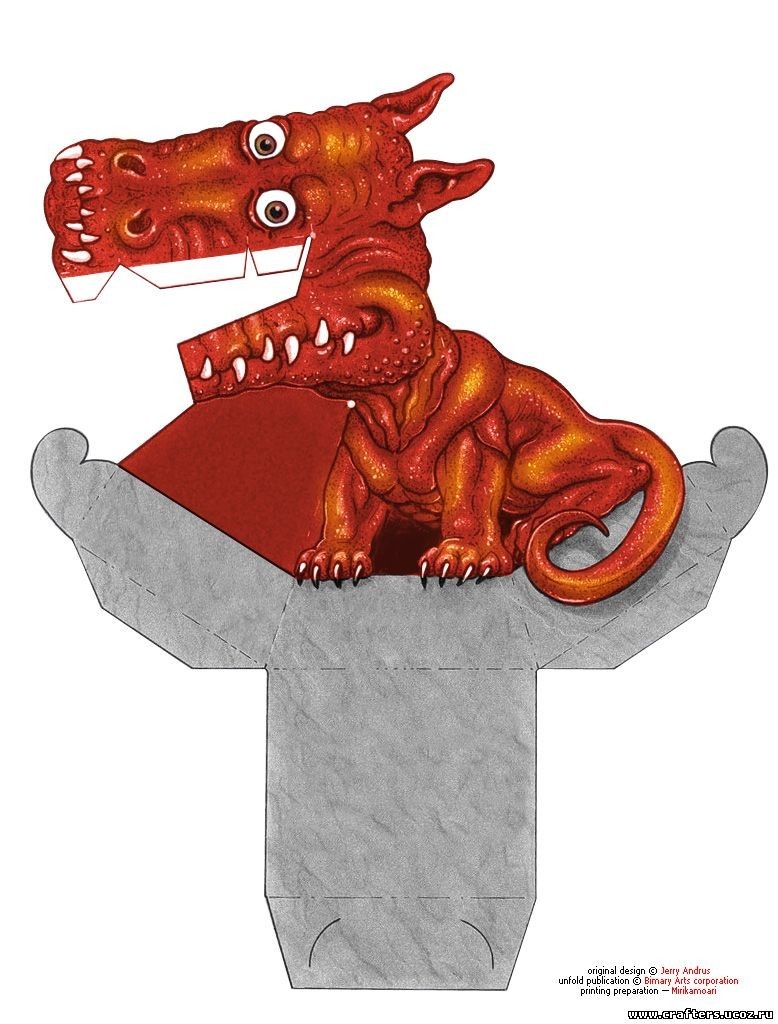 Дракончика нашла) Вот, вдруг кому-то надо. Там ещё скелет и бык есть, но не такие милые. Как с принтером решу вопрос, склею. Забавная штукенция.