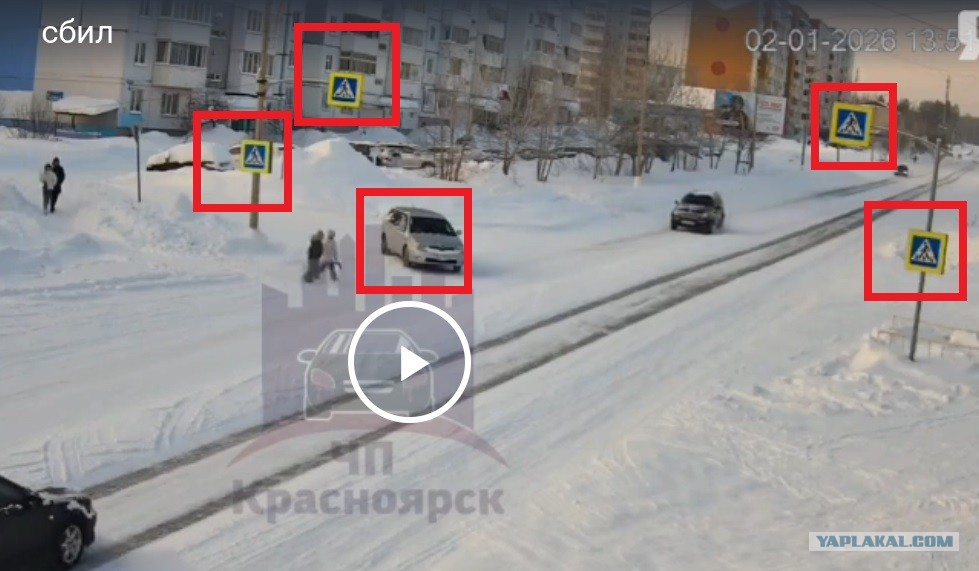 Да блин БЕЛЫЙ ДЕНЬ, все в снегу отличная видимость 4 ЗНАКА ПЕРЕХОДА ВЕСИТ хорошо читаемыем и отлично видимые, и перед всем этим СТОИТ машина.