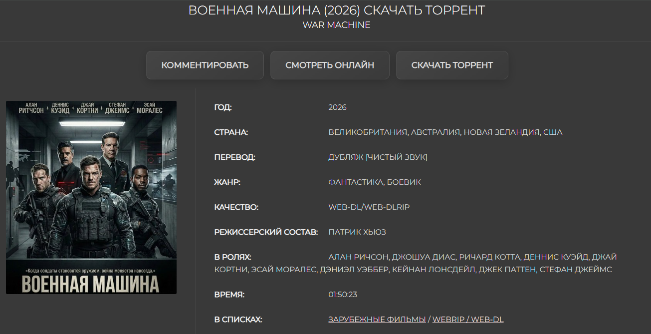 Трейлер фантастического боевика «Машина войны» с Аланом Ричсоном