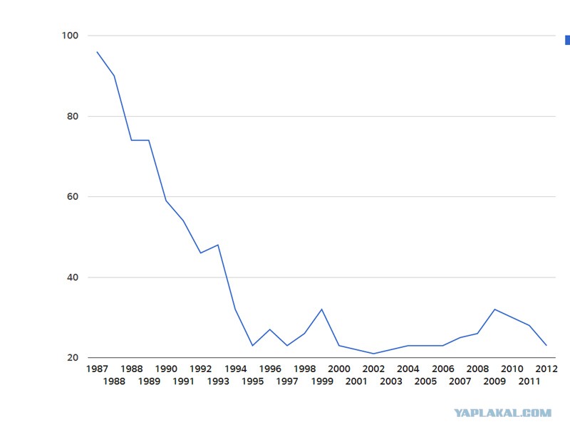 Кстати, провал со времён развала СССР. Причём тут современность? Да и график туфта. Мы в любом случае лидеры. Ближайшие к нам США в 2 раза меньше имеют.
