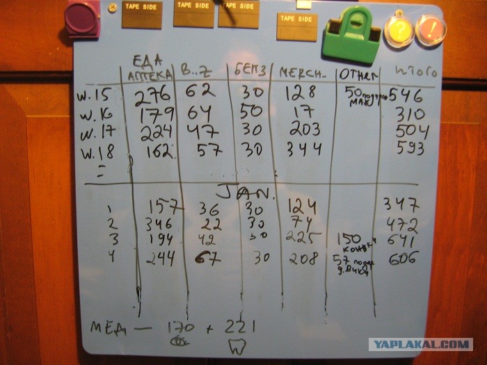 [quote]Траты на повседневную жизнь в США по неделям, семья из 5 человек (двое взрослых, трое детей), друг прислал.