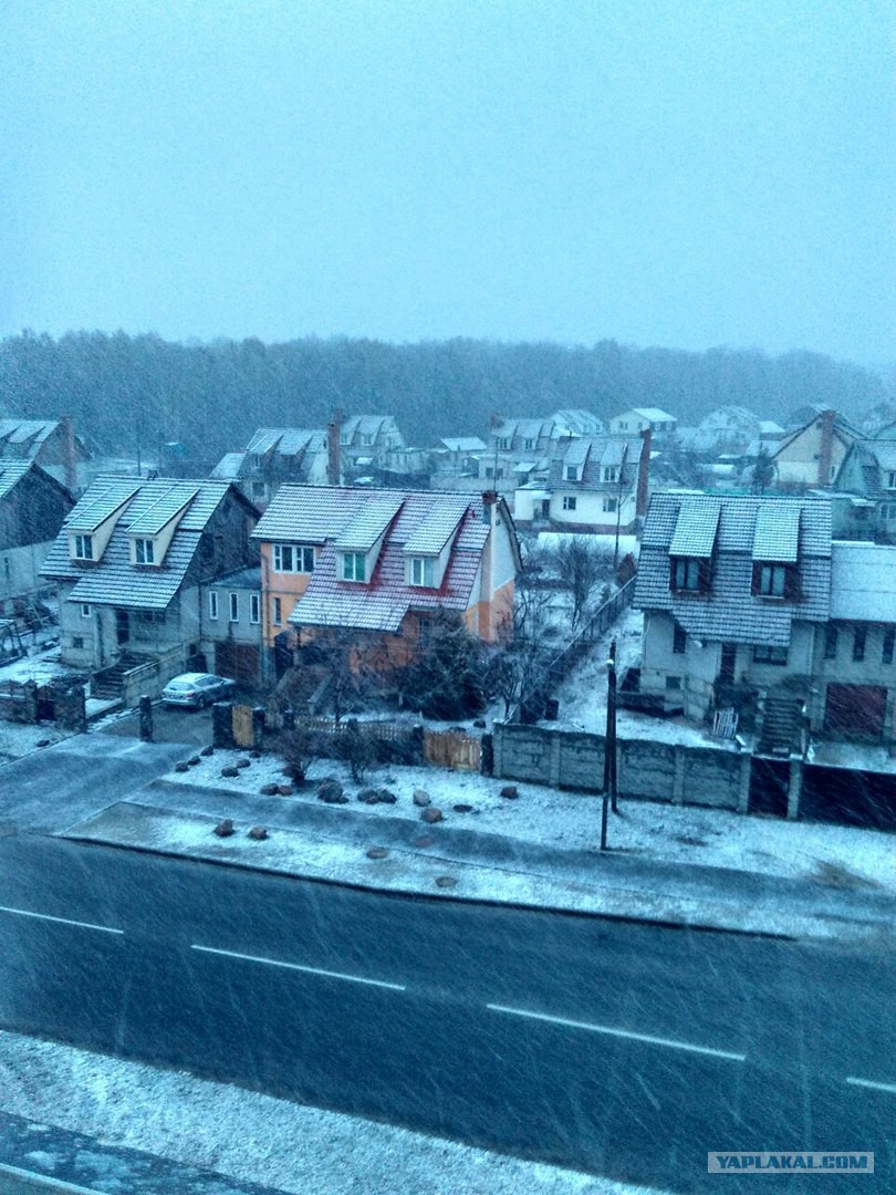 Вот неудачная первоапрельская шутка. Всю неделю погода была солнечная и +10 +12 (г. Гомель РБ) листики на деревьях начали распускаться, а два часа назад снег повалил.