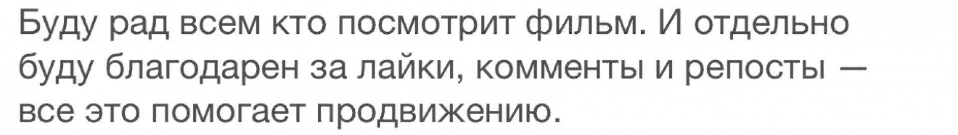 Буду рад всем кто посмотрит фильм. И отдельно буду благодарен за лайки, комменты и репосты — все это помогает продвижению.