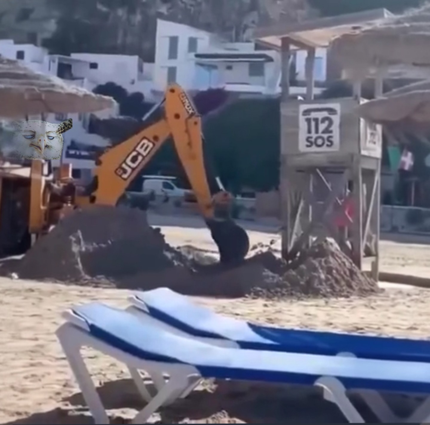 А вот если бы экскаваторщик ещё бы посадил к себе на колени голую нимфу, то мужики на пляже не только бы смотрели ....